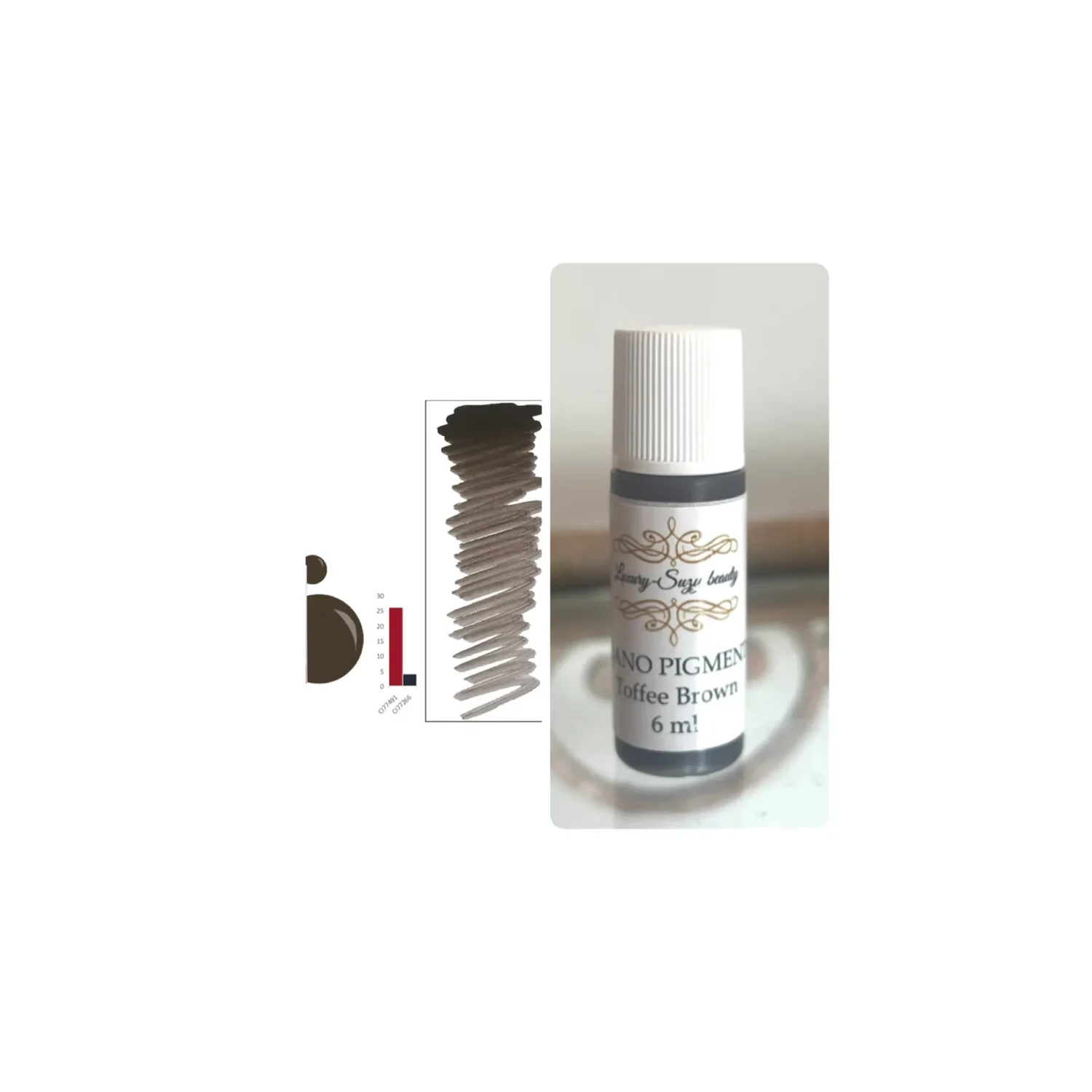 A Toffee Brown egy meleg barna pigment finom sárgás árnyalatokkal, amely kiválóan alkalmazkodik különböző bőr- és hajtípusokhoz. Letisztult tónusa miatt ideális választás ombre technikához, lágy átmenetekhez vagy természetes hatású szemöldökhöz.